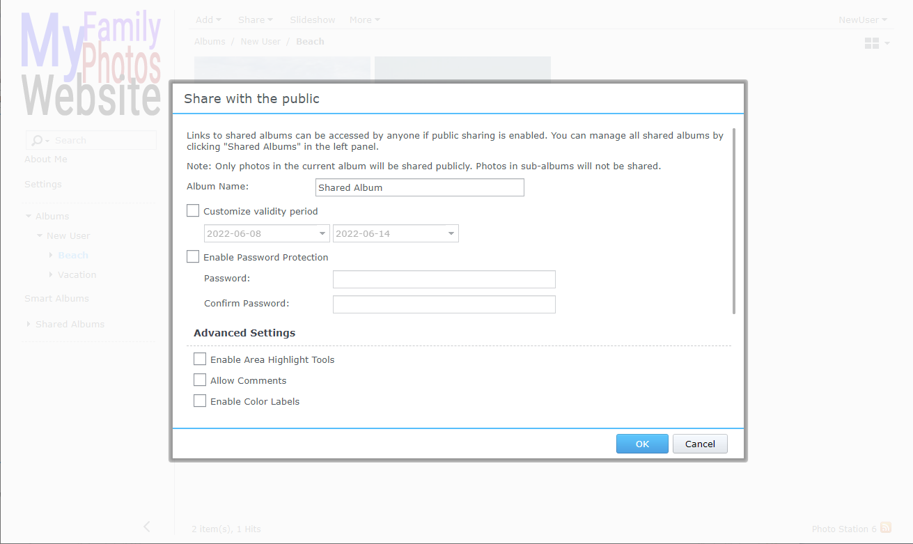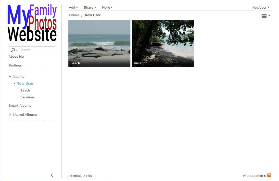 Below is the Initial Screen when you go to MyFamilyPhotosWebsite.com
